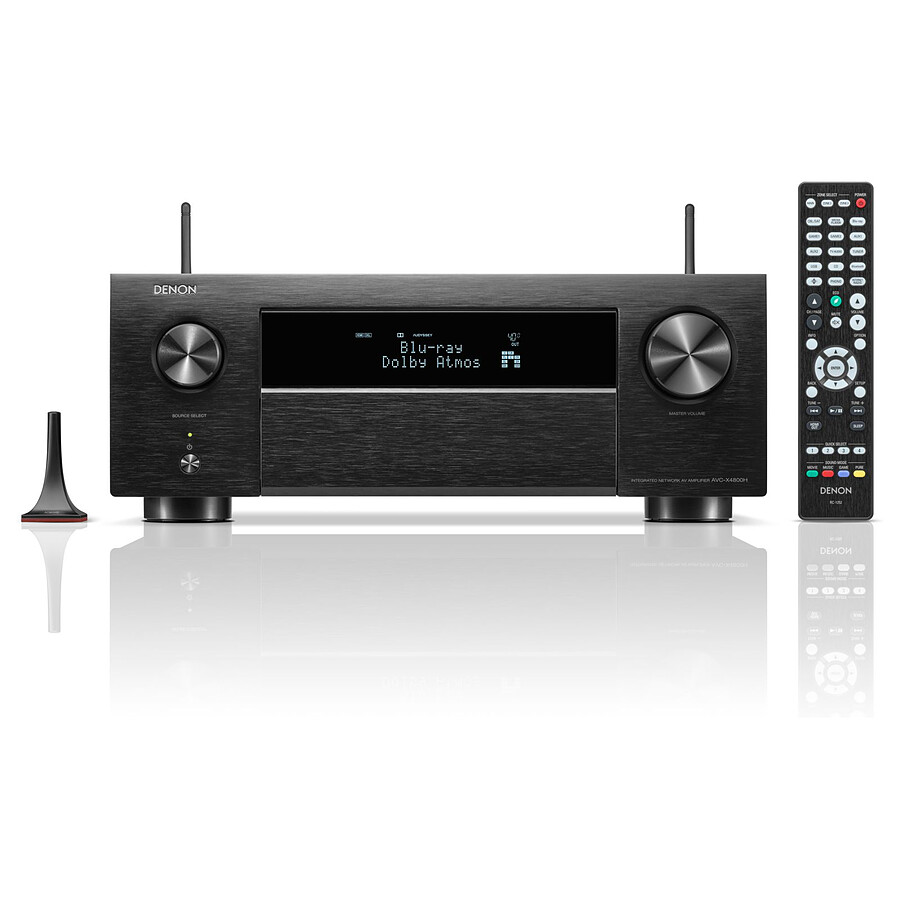 L’ampli Denon AVC-X4800H intègre également la technologie d’autocalibration Audyssey MultEQ XT32 permettant de mesurer les propriétés acoustiques de la pièce d’écoute. Pour ce faire, cet ampli Denon AVC-X4800H est livré avec un microphone externe. Une fois branché à l’ampli (port mini-jack en façade) et placé à la position d’écoute,  il suffit de lancer la procédure de calibration depuis le menu de l’ampli. Ainsi, le rendu sonore est adapté à votre pièce de vie. Par ailleurs, il est possible d’activer la technologie Audyssey Dynamic Volume pour limiter les écarts de volume et profiter des écoutes nocturnes sans dérager votre voisinage.