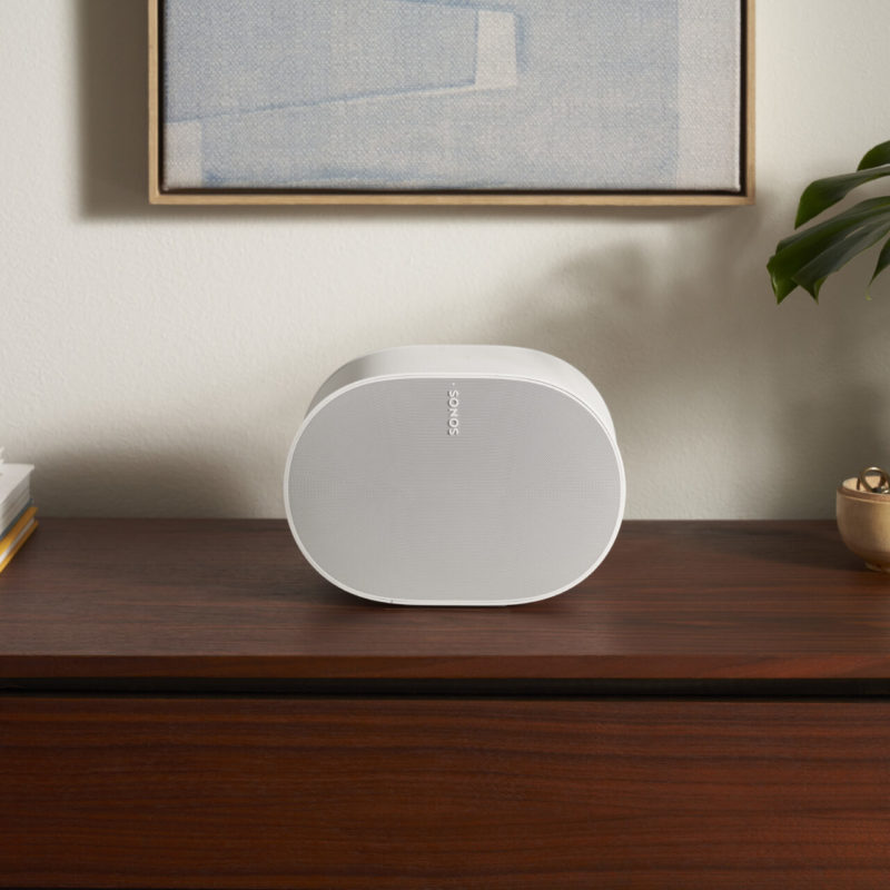 Révolutionnaire avec ses haut-parleurs Dolby Atmos sur sa face supérieure, l’enceinte connectée Sonos Era 300 constitue une solution de premier choix pour profiter d’une immersion sonore inédite, qu’elle soit utilisée seule pour une écoute musicale ou avec une barre de son, comme enceinte surround Atmos.