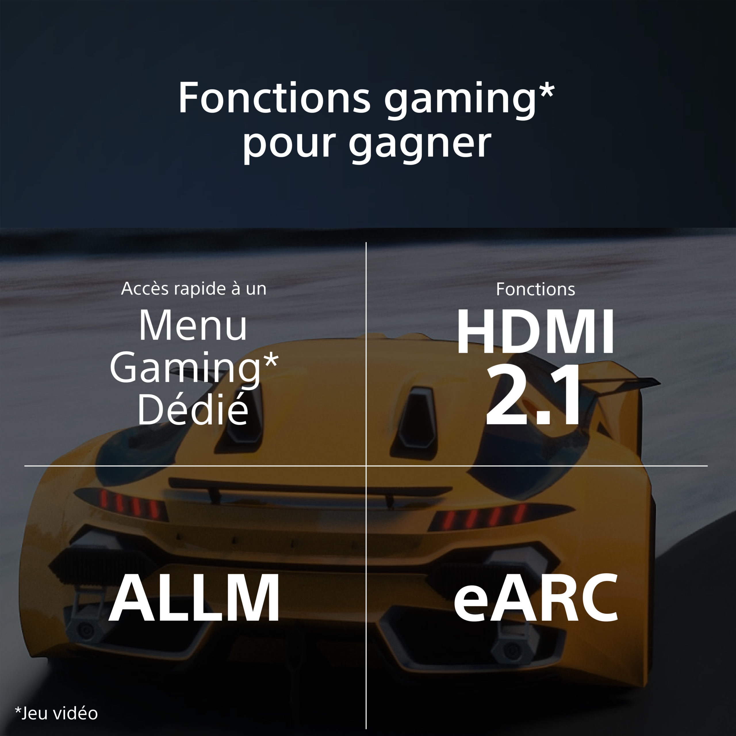 Ce grand téléviseur Sony KD-65X80L dispose d’une connectique comprenant deux prises HDMI 2.0 et deux prises HDMI 2.1, dont une est par ailleurs compatible avec la technologie eARC (enhanced Audio Return Channel) pour profiter d’une connexion simplifiée à un amplificateur home-cinéma ou une barre de son par exemple. Pour le son, cette TV Sony KD-65X80L est aussi dotée d’une sortie audio numérique optique (Toslink). On peut également mettre à profit sa connectivité Bluetooth pour y connecter un casque sans fil compatible.